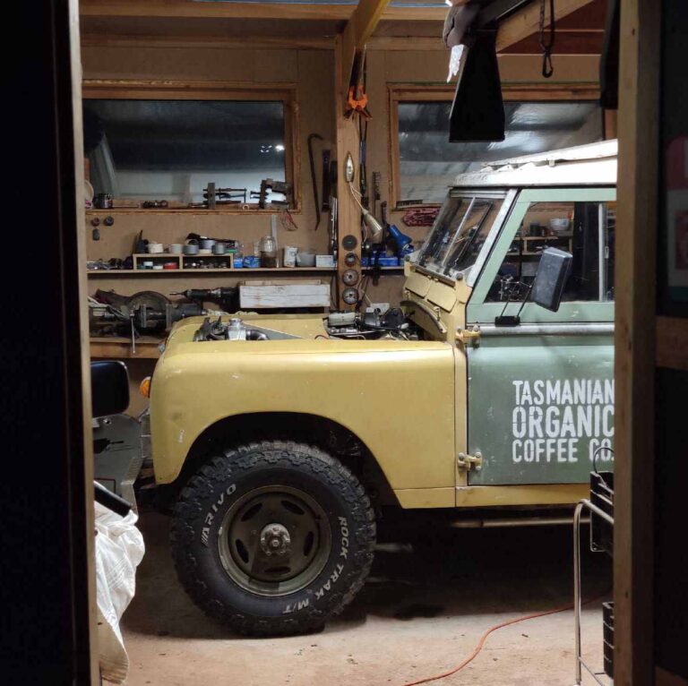 Experience the enchantment of a 60-year-old Land Rover transformed into a delightful café on wheels, the only off-grid four wheel drive coffee van in Tassie.
