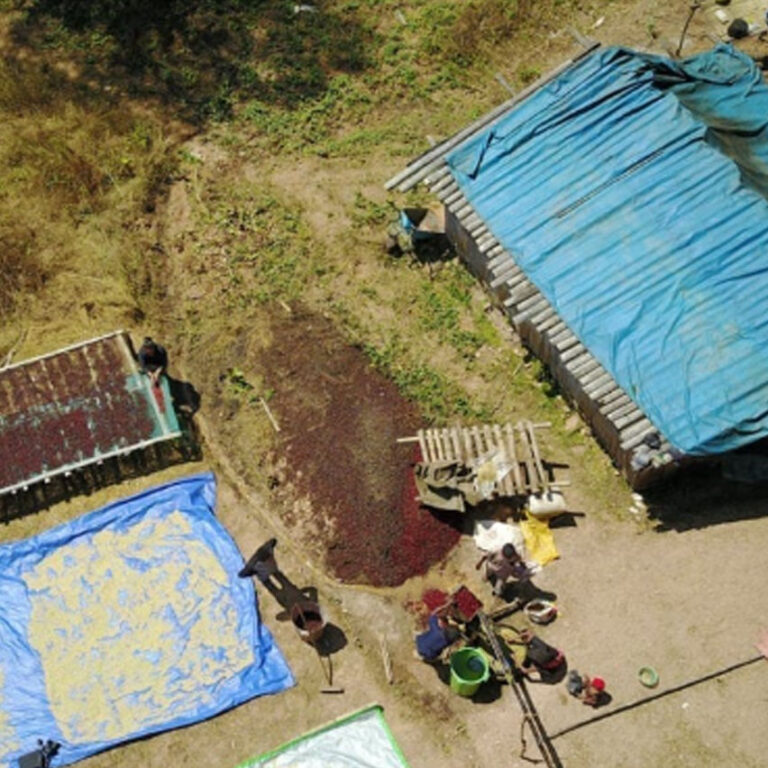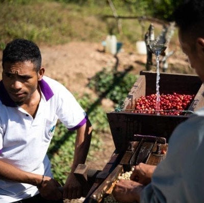 All the cherries from the same farmer cooperative get brought to a central processing centre where the flesh gets separated from the seed via a pulping machine and by washing with water.